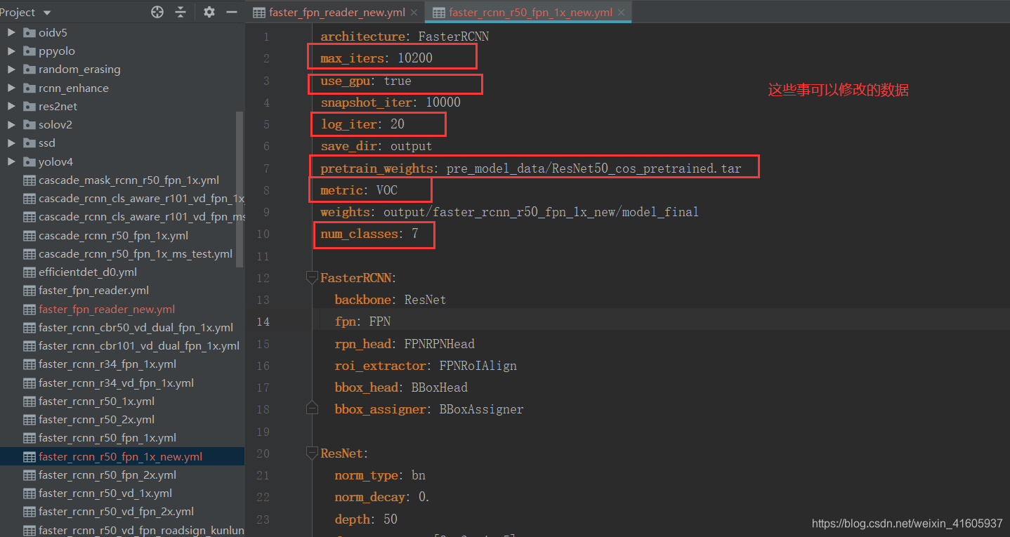 然后基于configs/faster_rcnn_r50_fpn_1x.yml文件进行修改: