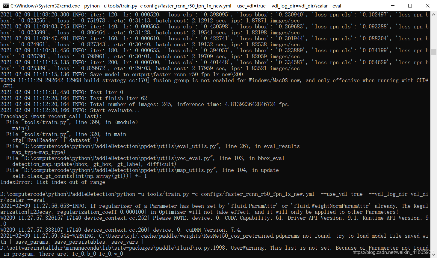 export CUDA_VISIBLE_DEVICES=0python -u tools/train.py -c configs/faster_rcnn_r50_fpn_1x.yml \ -o pretrain_weights=https://paddlemodels.bj.bcebos.com/object_detection/faster_rcnn_r50_fpn_1x.tar \ finetune_exclude_pretrained_params=['cls_score','bbox_pred'] \ --eval